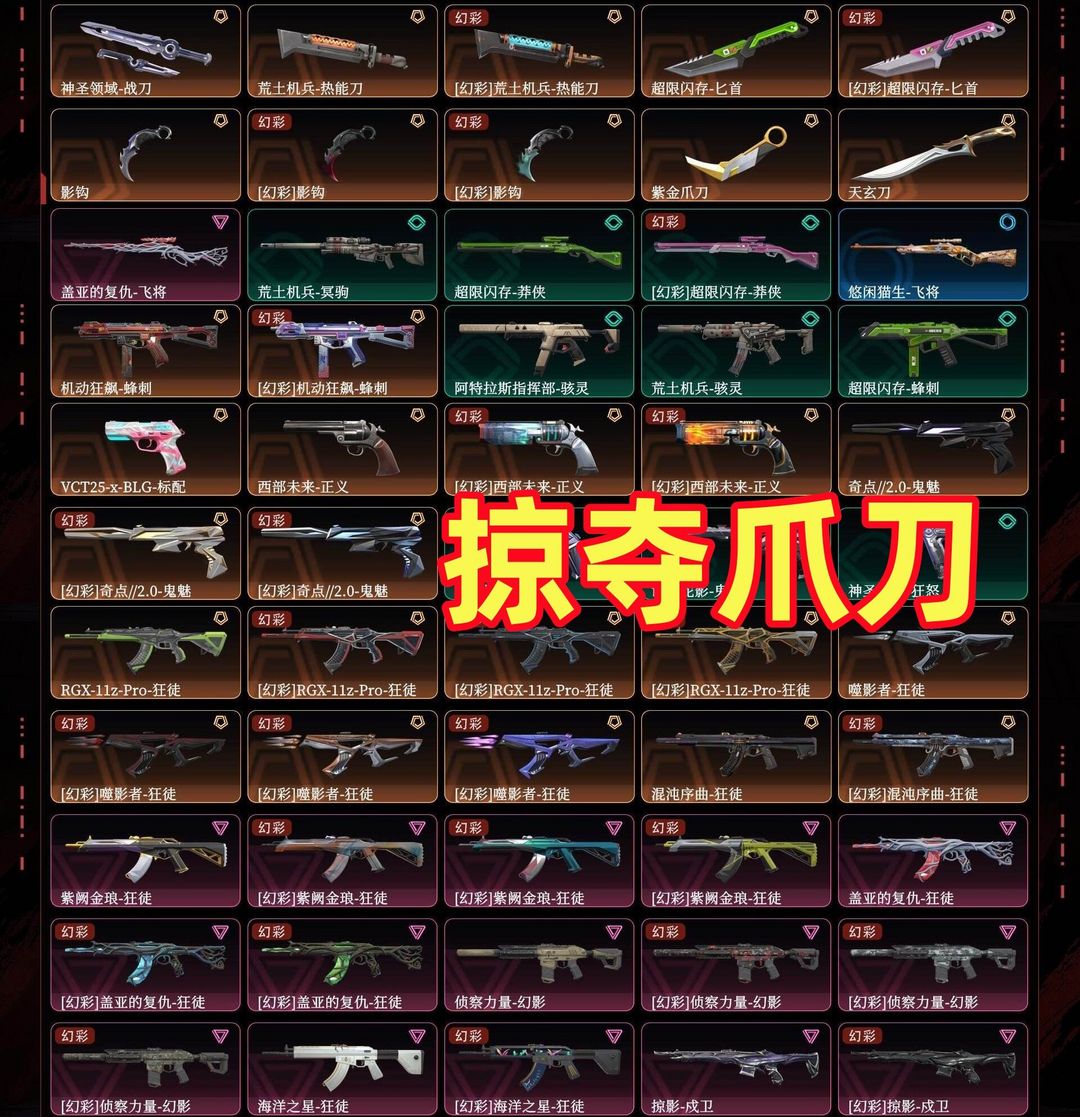 可排丨掠夺爪刀影钩丨紫金爪刀天玄刀丨噬影者显卡混沌紫金盖亚鱼缸丨西部未来丨侦查力量丨vct标配奇点